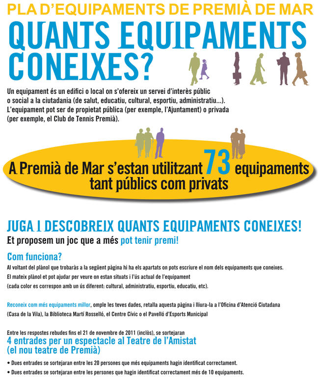Entre les respostes rebudes abans del 19 de novembre de 2011 (inclòs), es sortejaran 4 entrades per un espectacle al Teatre de l'Amistat (el nou teatre de Premià):