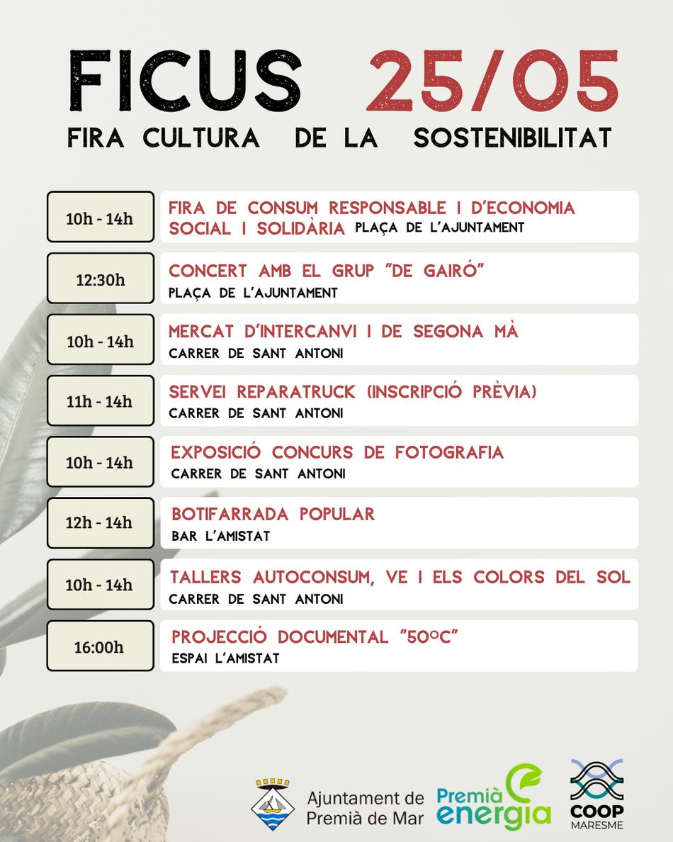 El diumenge 25 de maig tindrà lloc la segona edició de la fira de la cultura de la sostenibilitat de Premià de Mar, FICUS 2025, que impulsa Premià Energia.